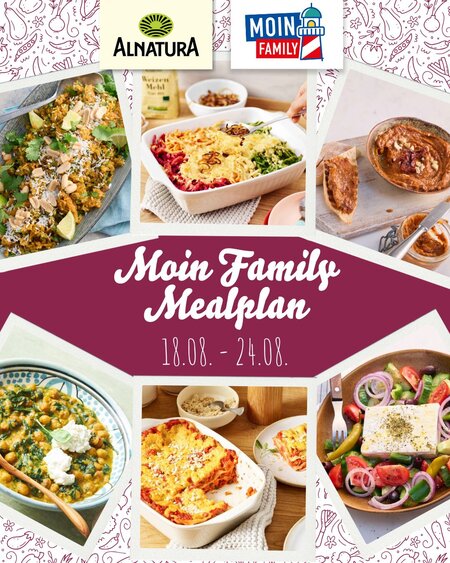 Gegen langes Suchen hilft unser Mealplan: Ein Hauptgericht von Alnatura, das der ganzen Familie schmeckt – und das von Montag bis Sonntag.
