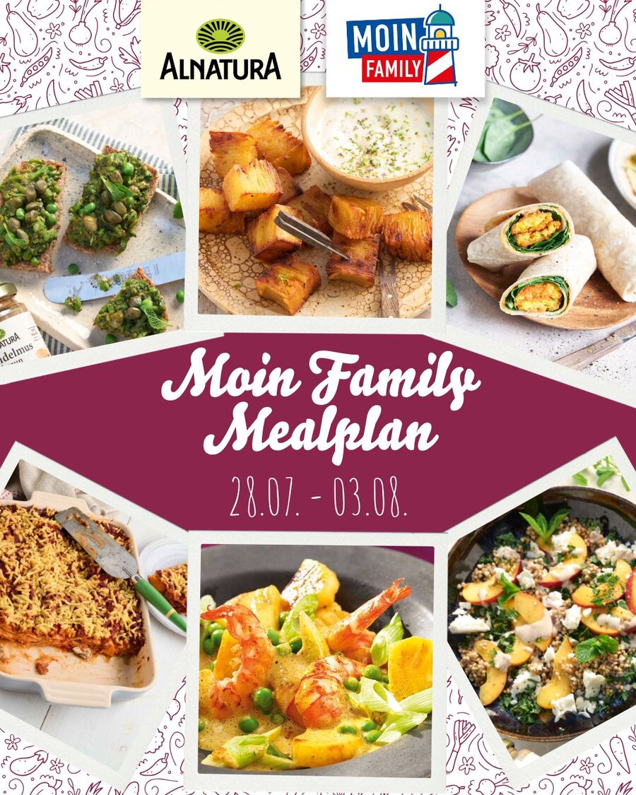 Bei uns findet ihr jede Woche einen Mealplan mit einem Hauptgericht von Alnatura für jeden Tag.